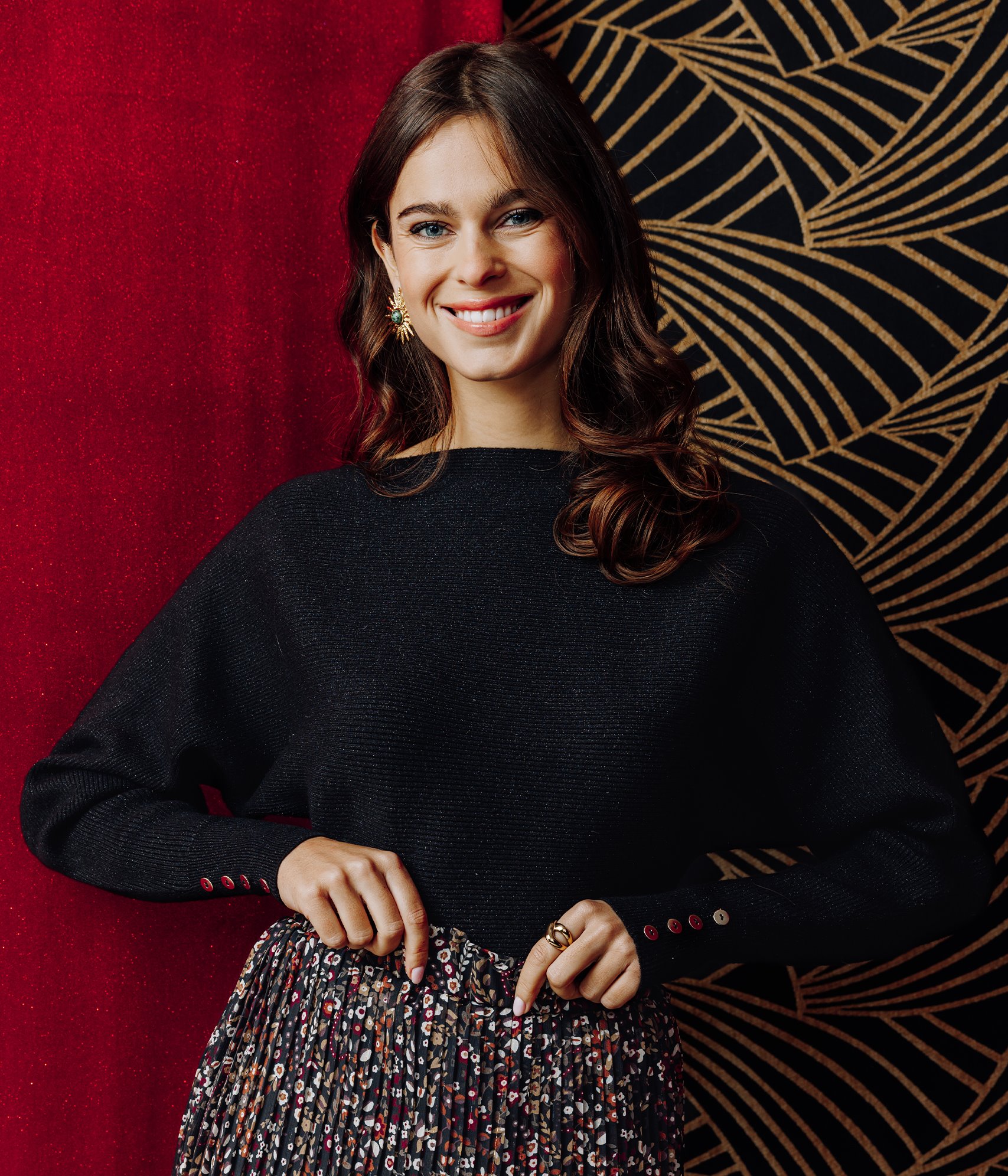 Notre mannequin Carla mesure 1m74 et porte un pull taille 36/S.