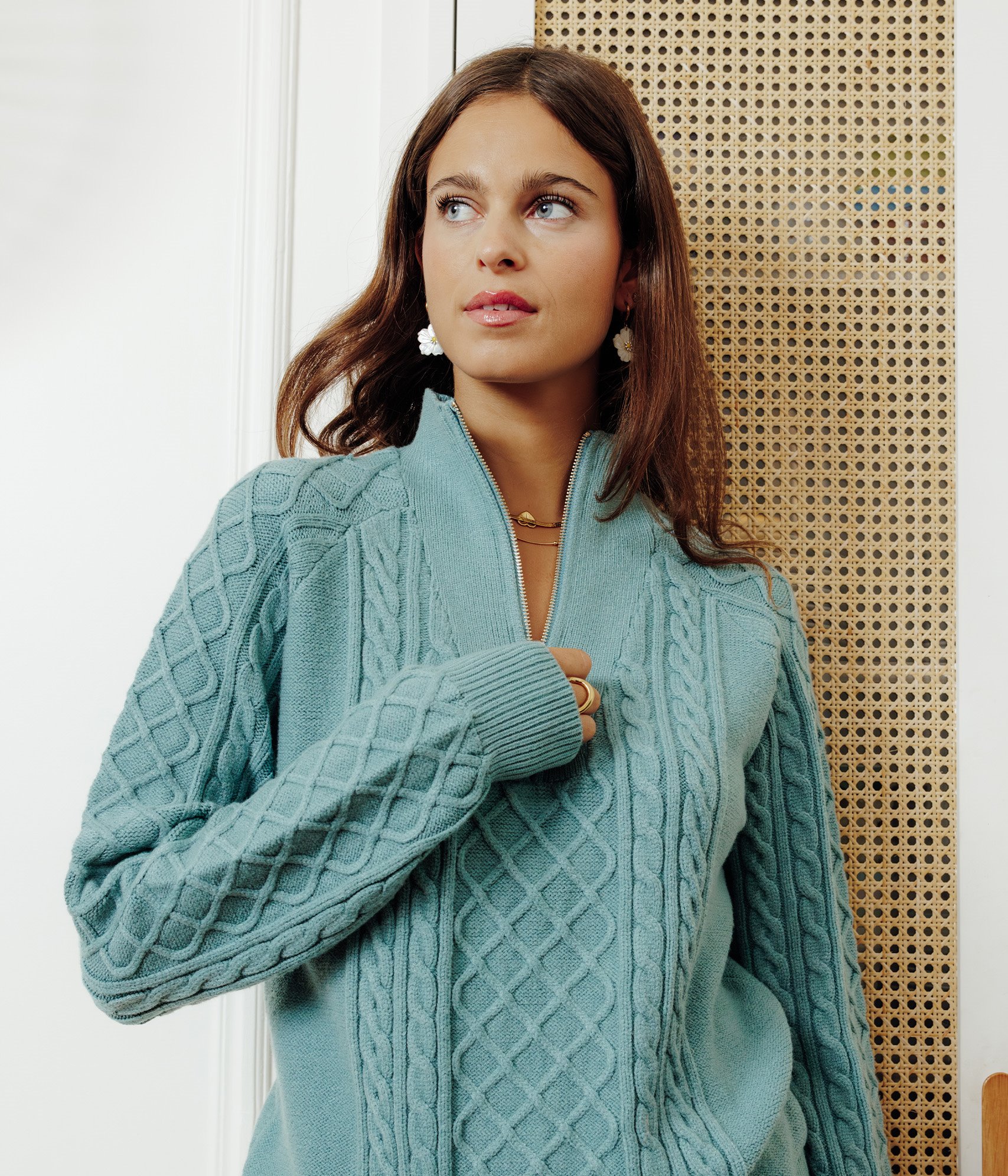 Notre mannequin Carla mesure 1m74 et porte un pull taille S/36.
