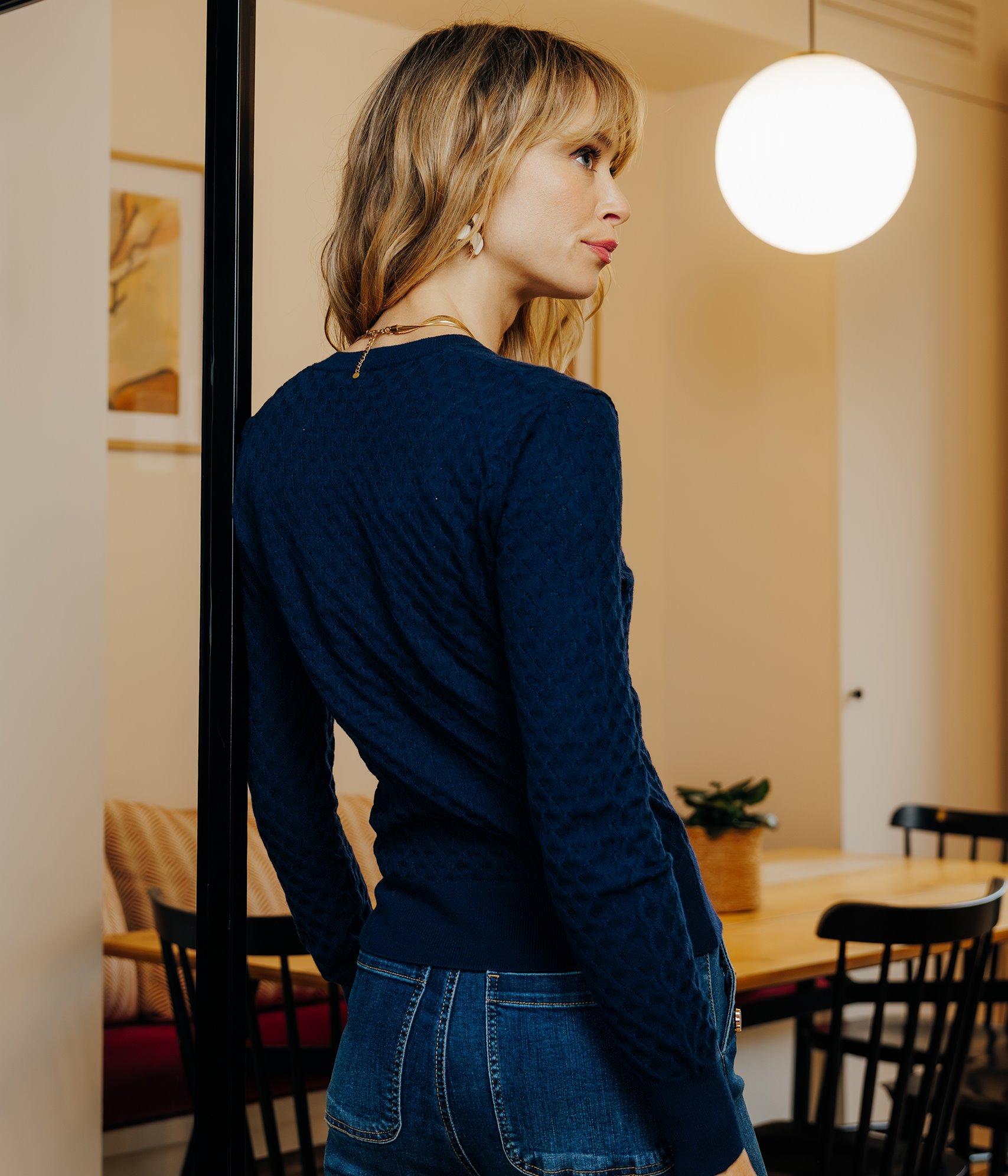 Notre mannequin Emeline mesure 1m73 et porte un pull taille 36/S.