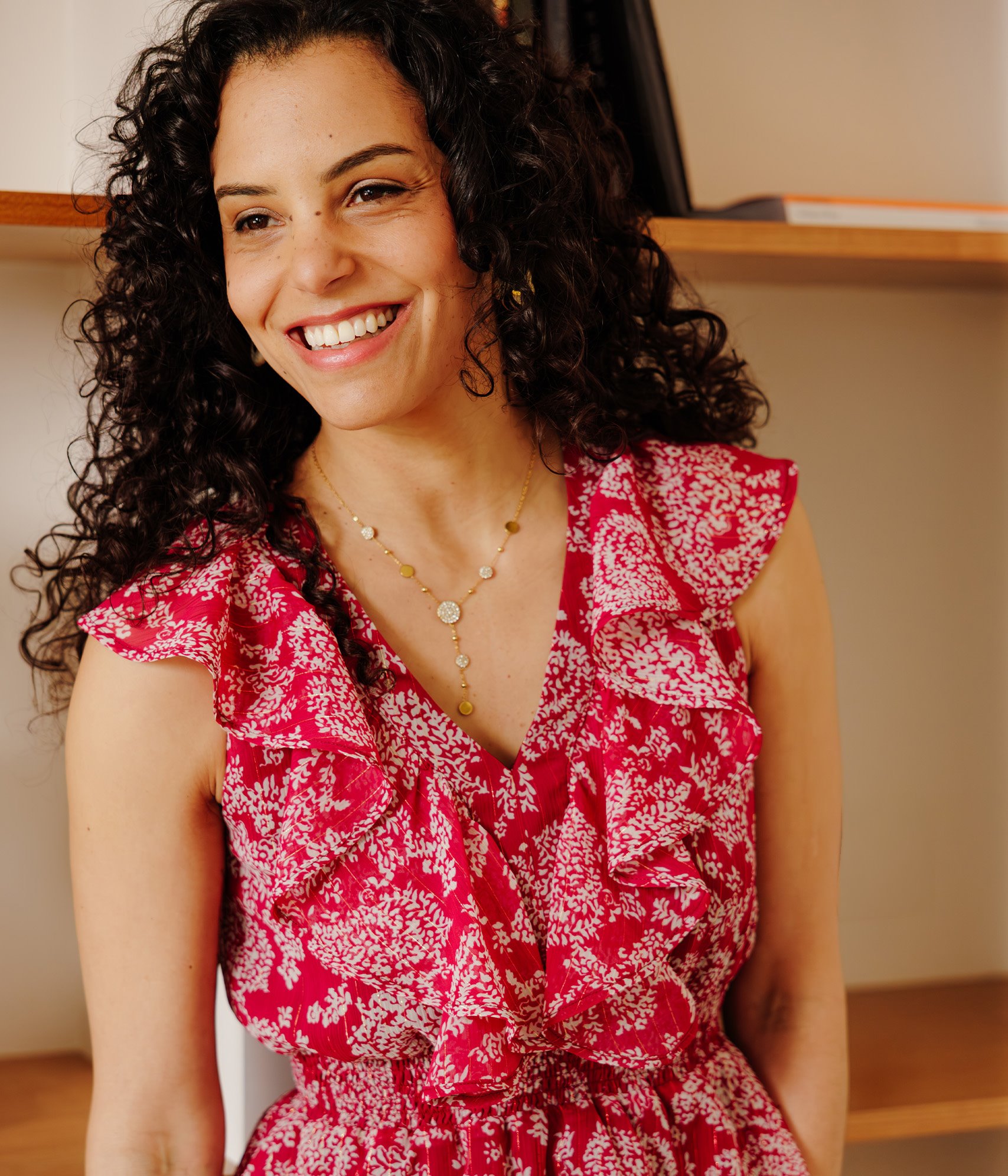 Notre mannequin Malaika mesure 1m78 et porte un top taille 36/S.