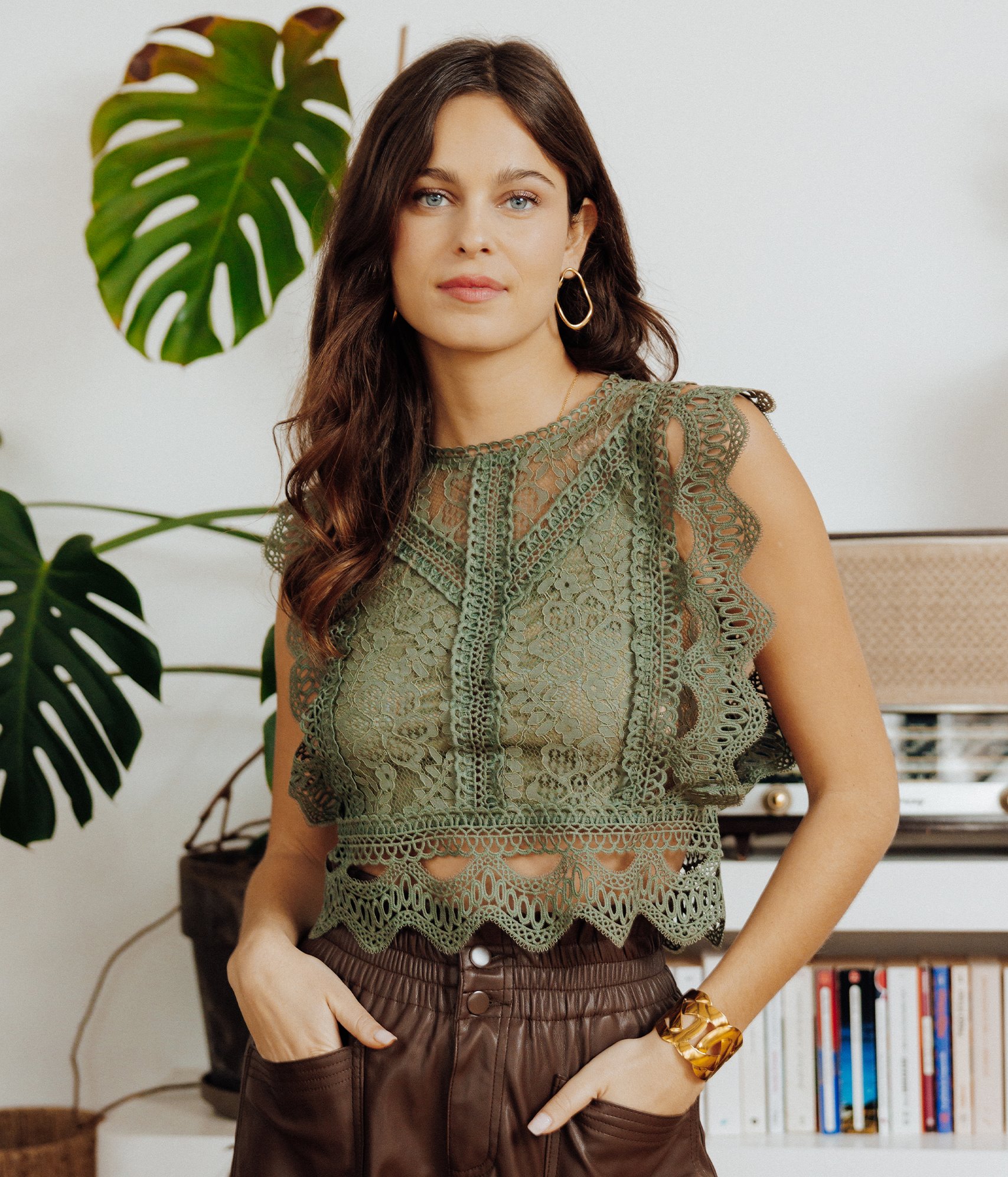 Notre mannequin Carla mesure 1m74 et porte une blouse taille S.