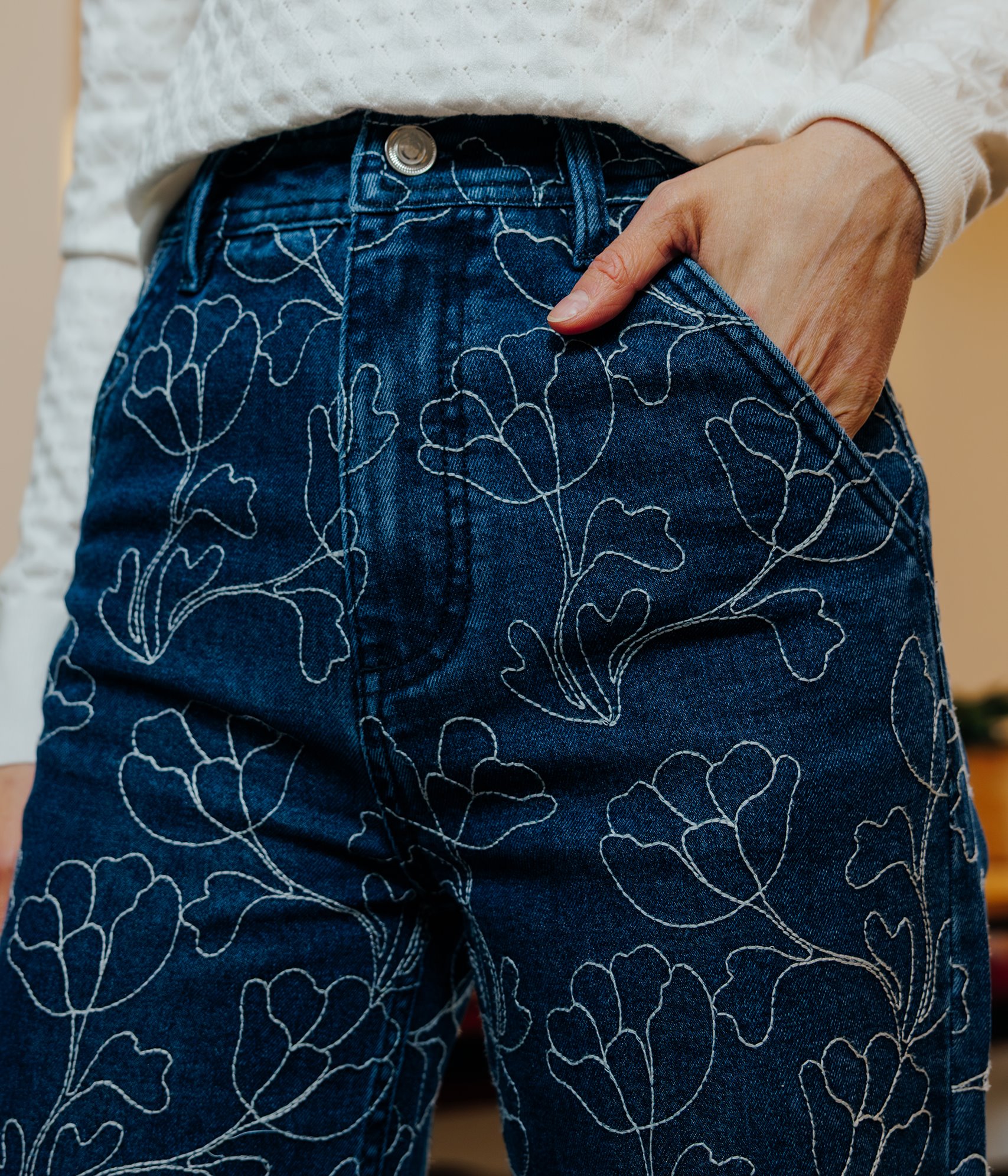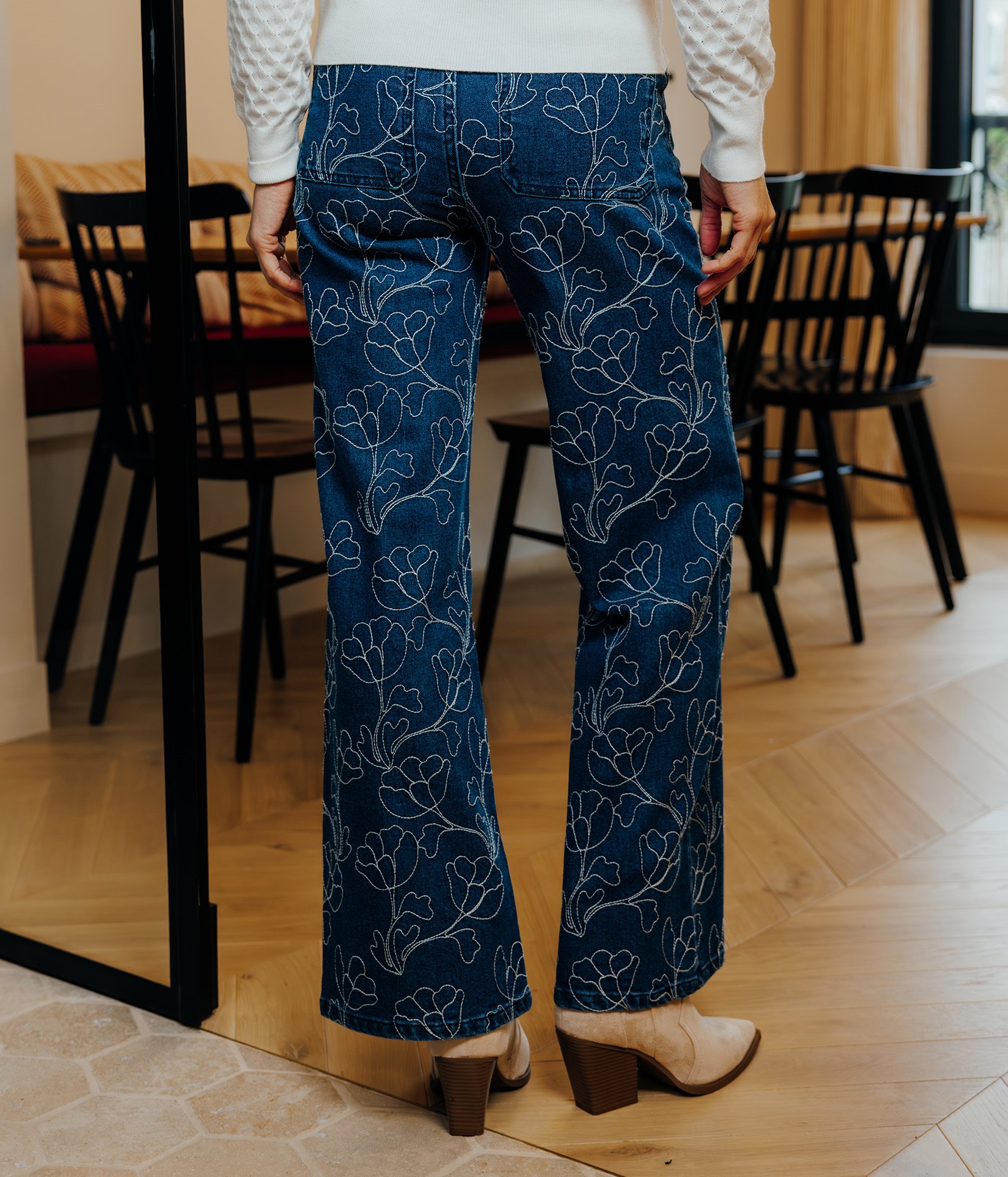 Jean large Adela fleurs brodées