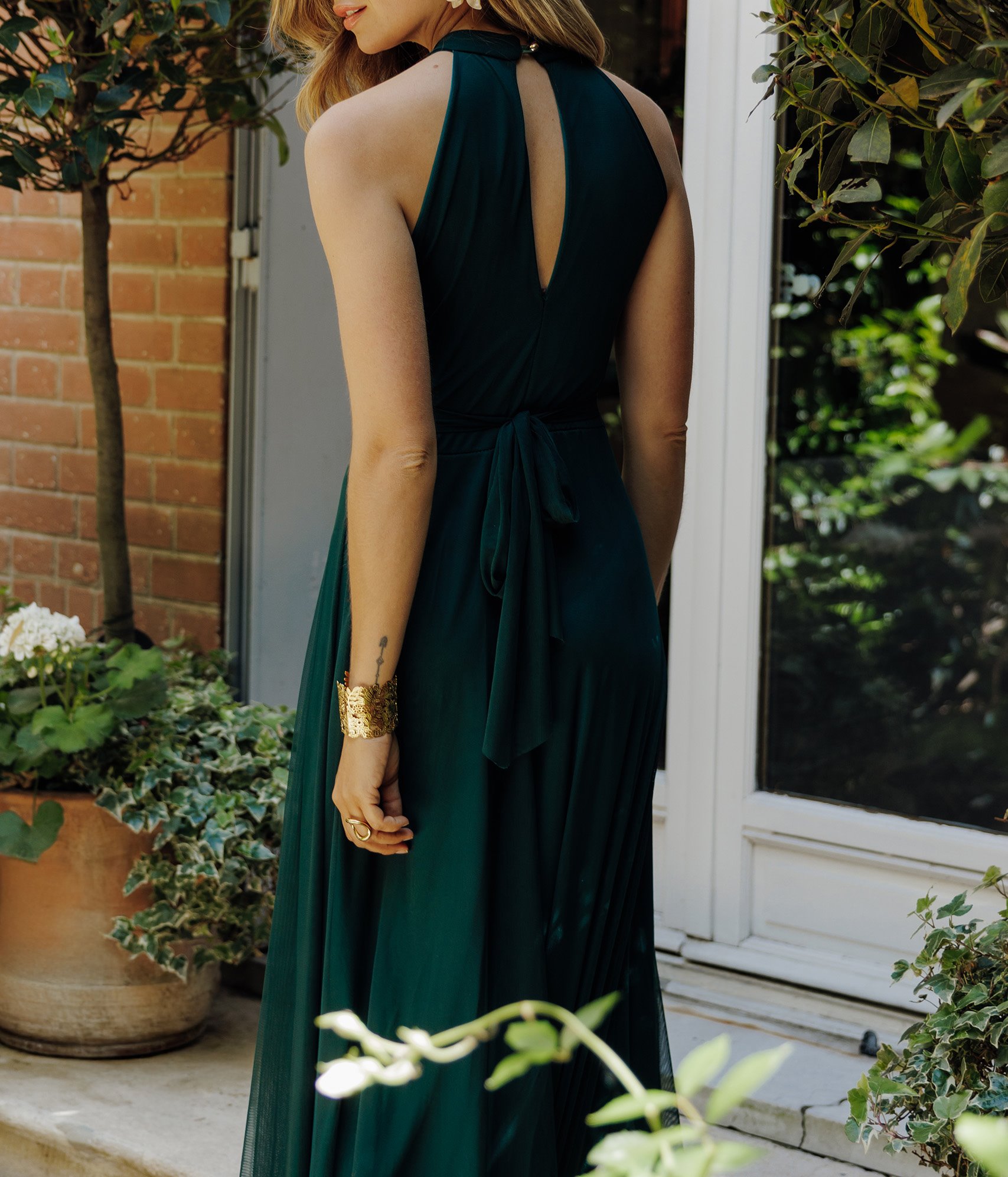 Robe de cérémonie longue sans manches en tulle doublé. Coupe cintrée longue. Sans manches. Emmanchures raglan. Col rond. Fermeture à 1 bouton au dos du col. Teinte unie. Tulle doublé. Découpe goutte sous le col devant et au dos. Taille ajustée par liens assortis à nouer au dos. Fronces devant sous le col et au-dessus de la taille.